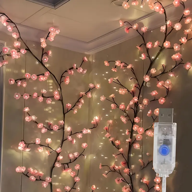 1pc LED Cherry Blossom Branch Light - USB-Powered Wall-Mounted Decorative Flower Garland with Warm White LEDs, Contemporary Plastic Design for Home, Bedroom, Office, and Holiday Decor, Cherry Blossom Decor
