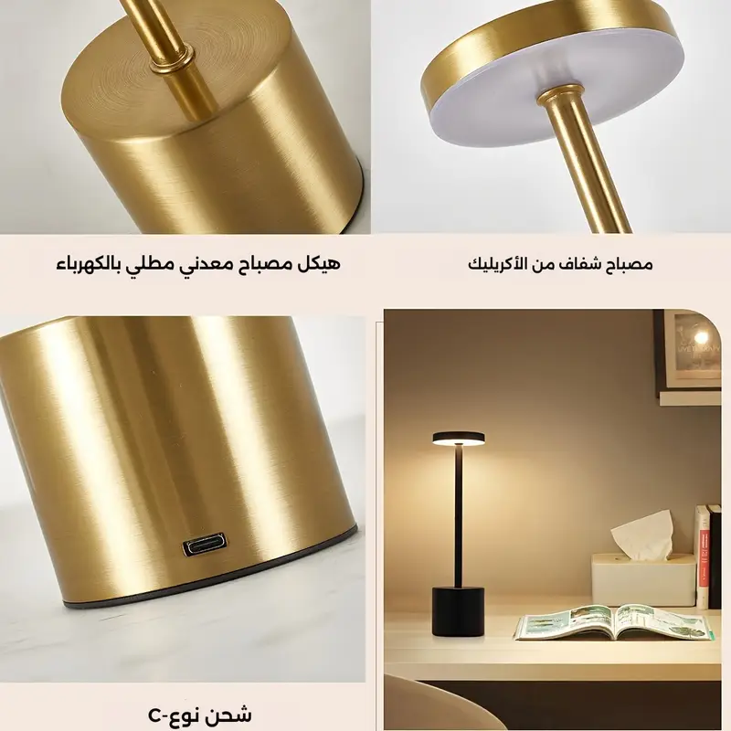 مصباح طاولة معدني حديث بلمسة اللمس، شحن USB، ألوان قابلة للتعديل، قابل للتعتيم، ضوء ليلي صغير، تشطيب مصقول، لون صلب، قاعدة من الألومنيوم المصقول، مع بطارية ليثيوم قابلة لإعادة الشحن، مناسب لغرفة المعيشة، غرفة النوم، تزيين طاولة الطعام