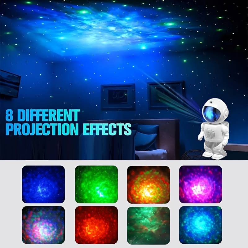 يأتي جهاز العرض بعدد 8 أوضاع بنمط سديم ملون متغير بمجموعة متنوعة من الألوان ومزيين بأضواء نجوم وامضة إذ يمكنك تبديلها من خلال جهاز التحكم عن بعد أو