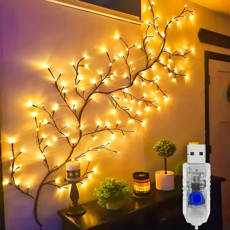 1PC USB-Powered Willow Branch LED Wall Decor, 96 LED Lights, 5.9ft/1.8m Festive Decoration String, Suitable for Living Room, Bedroom, Wedding, Party, Patio, and Garden Lighting Decorations